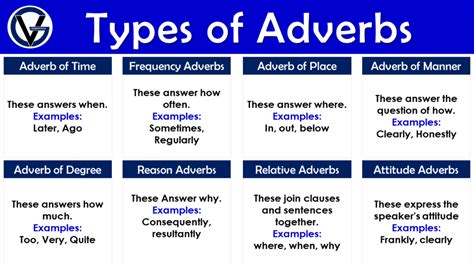 10 types of adverbs with examples sentences