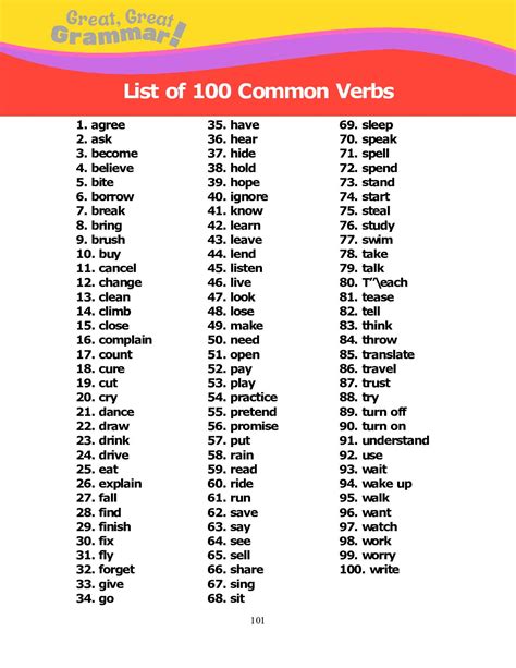 100 examples of verb words