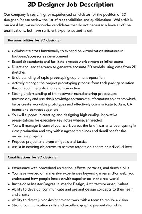 2d 3d designer job description