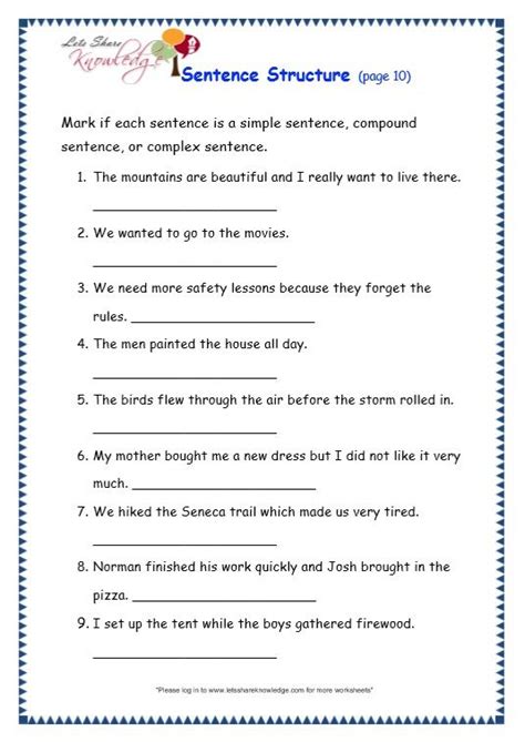 3rd grade types of sentences worksheets