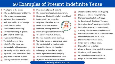 50 examples of present indefinite tense
