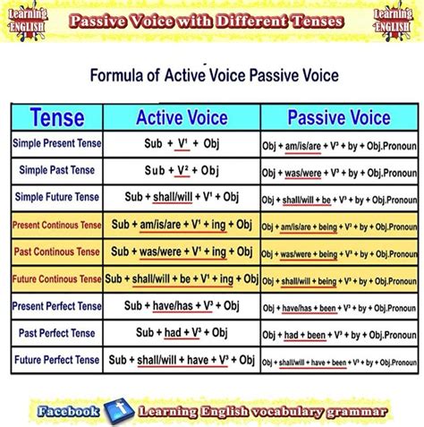 active to passive voice formula chart