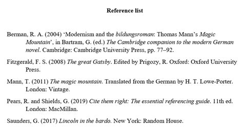 book reference list example