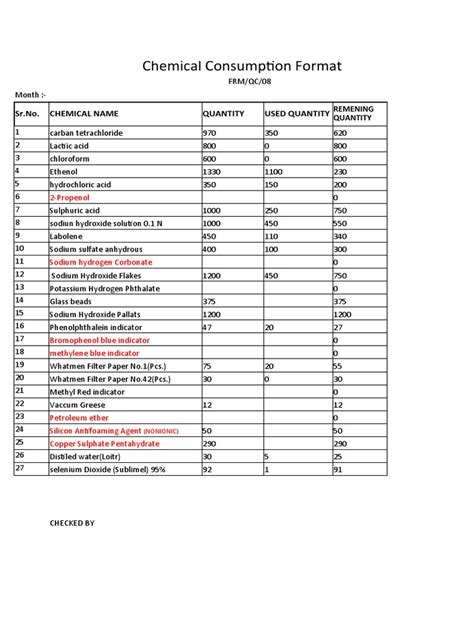 chemical consumption report format