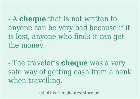 cheque example sentence