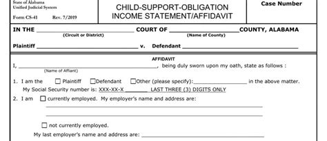 child support statement form