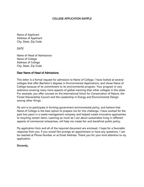 college admissions letter example