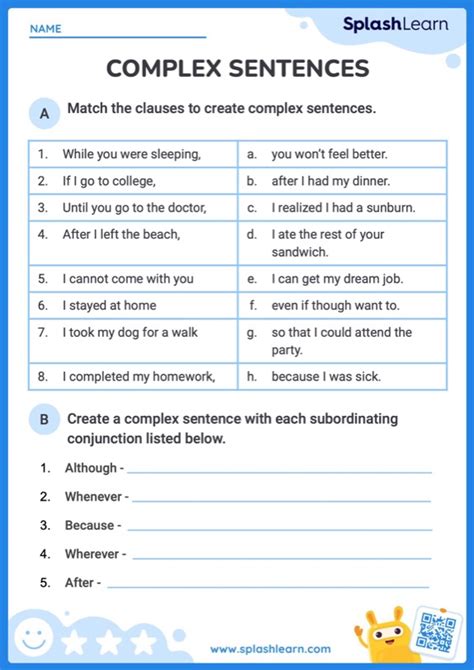 complex sentence worksheet for grade 4