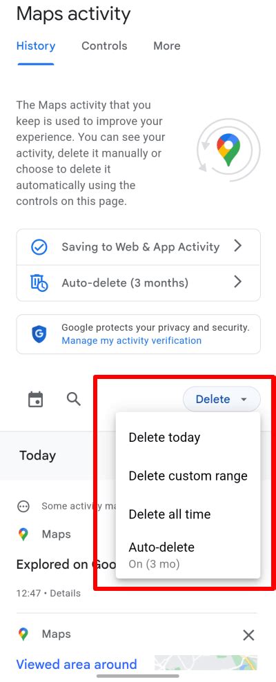 delete google maps search history android