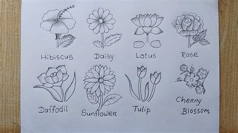 different types of flowers drawing easy