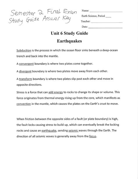 earth science final exam answer key