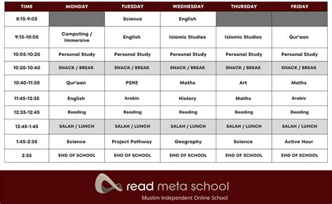 example of a timetable for secondary school