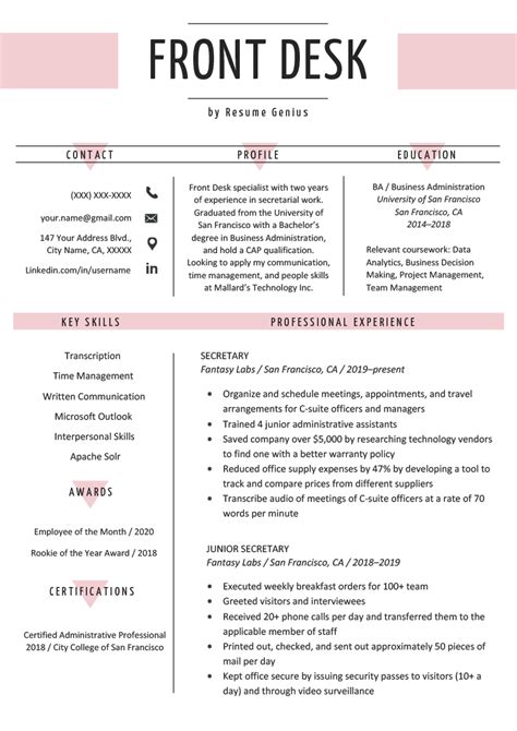 front desk admin resume sample