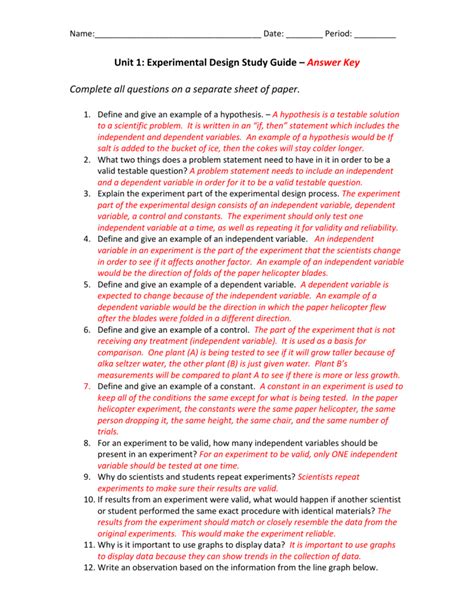 fundamentals of experimental design worksheet answer key