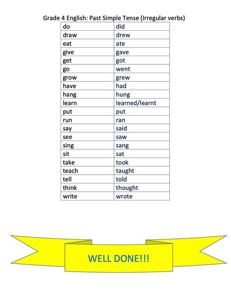 irregular verbs grade 4 list