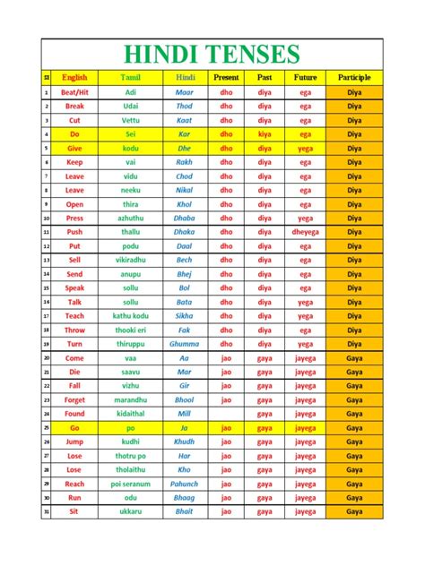 learn hindi verbs pdf