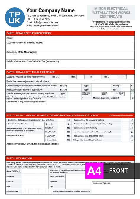 minor works certificate template