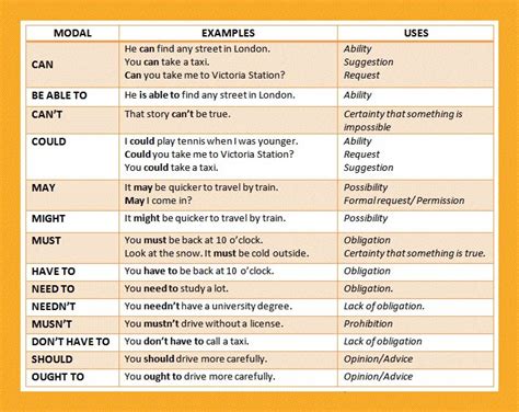 modals uses and examples