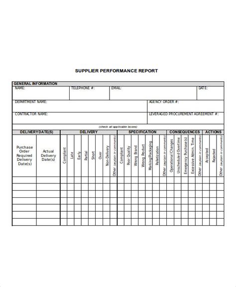 monthly supplier performance report template