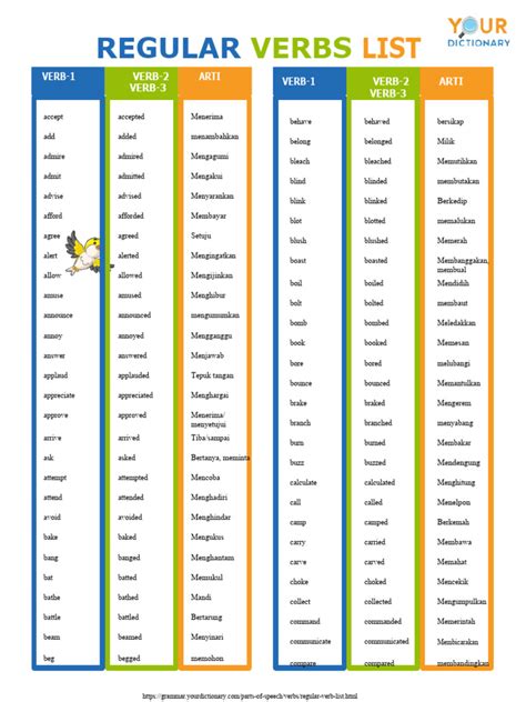 most used regular verbs list pdf