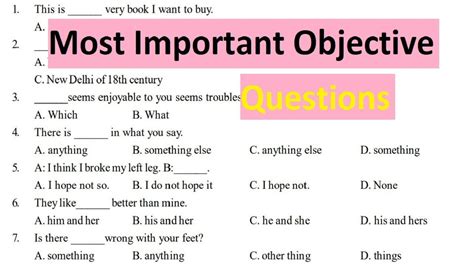 objective questions meaning in english
