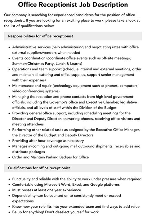 office receptionist duties. There are some references to office receptionist duties in this article. If you are looking for office receptionist duties you've came to the right place. We have posts about office receptionist duties. You can check it out below.