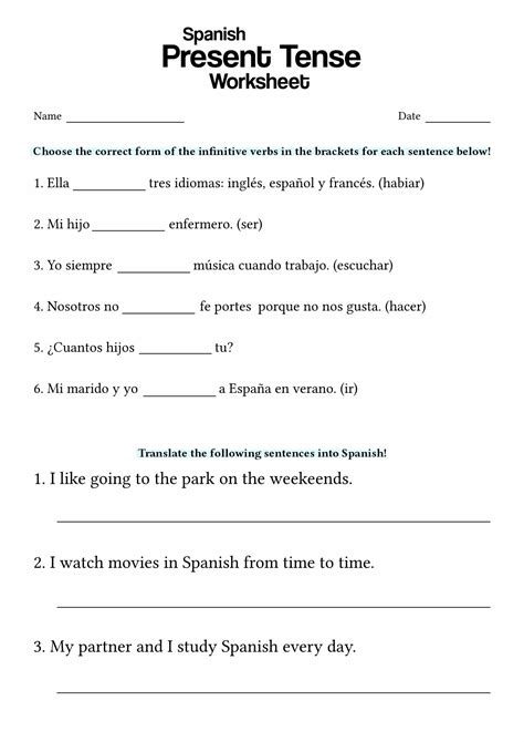 present tense spanish worksheet