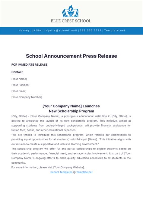 press release example for students in school