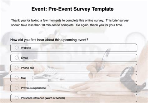 sample pre event survey questions