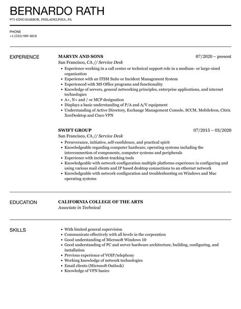 service desk sample resume