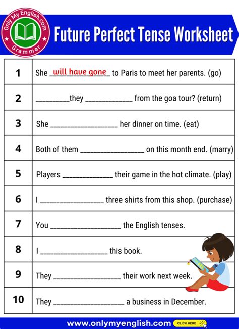 simple future perfect tense worksheet