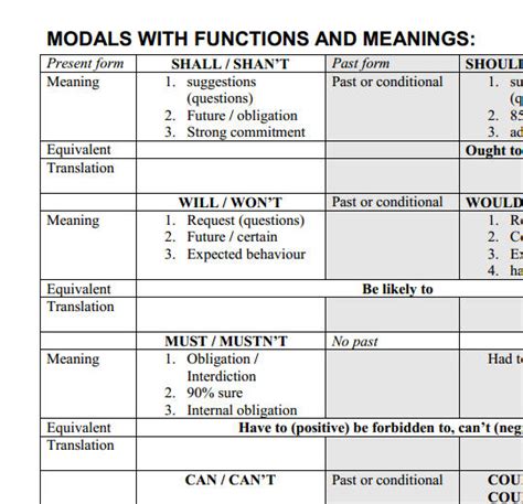 types of modals and their functions
