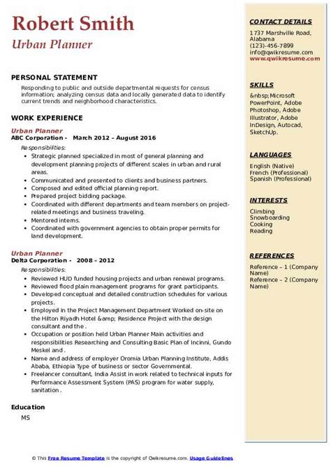 urban planning resume sample