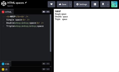 what is the code for space in html