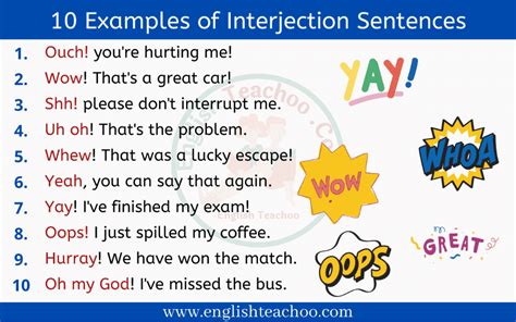 write 10 sentences with interjection